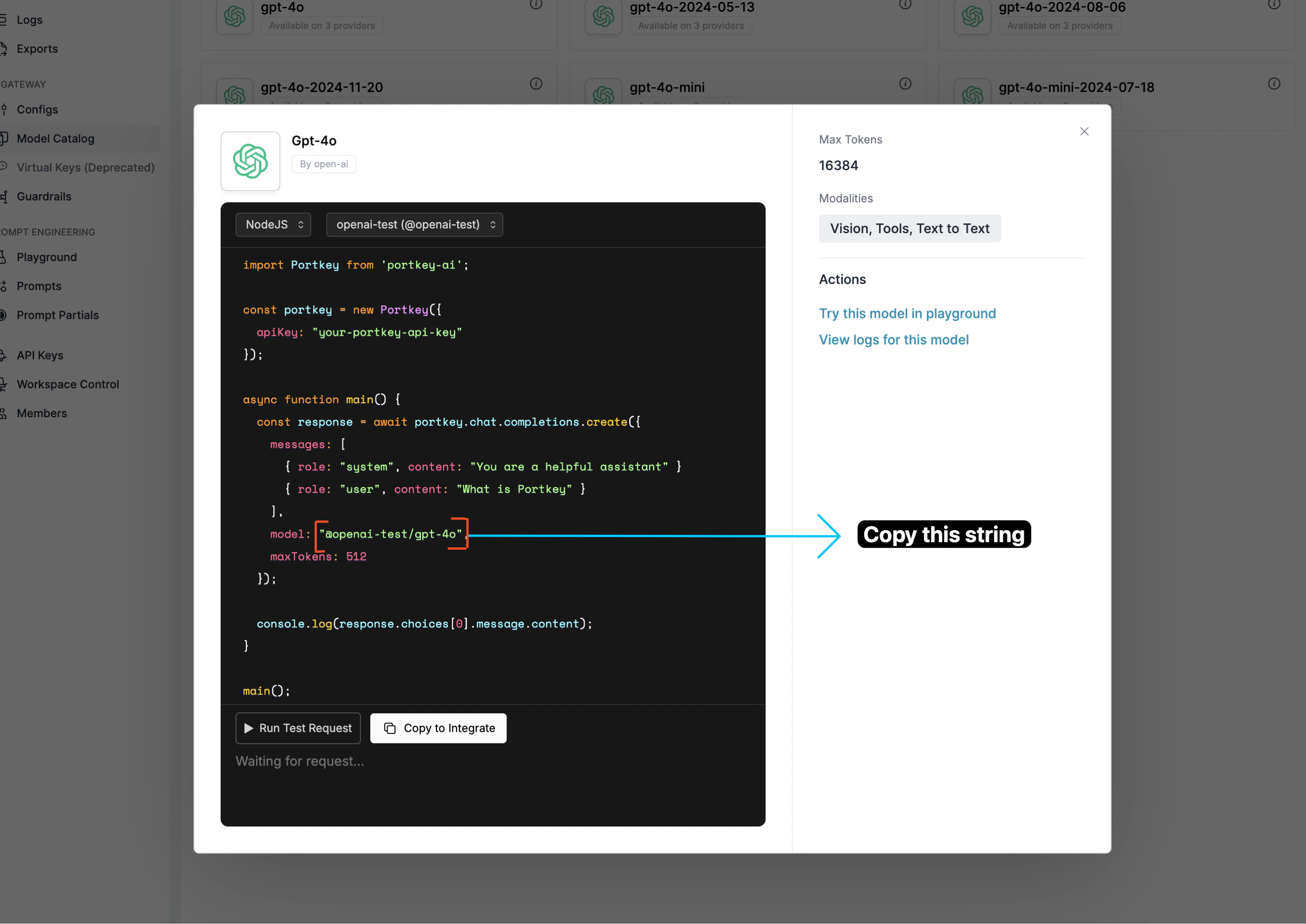 • API endpoint URL: https://api.portkey.ai/v1/chat/completions